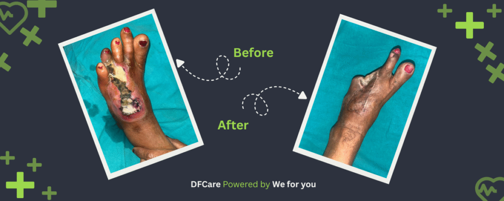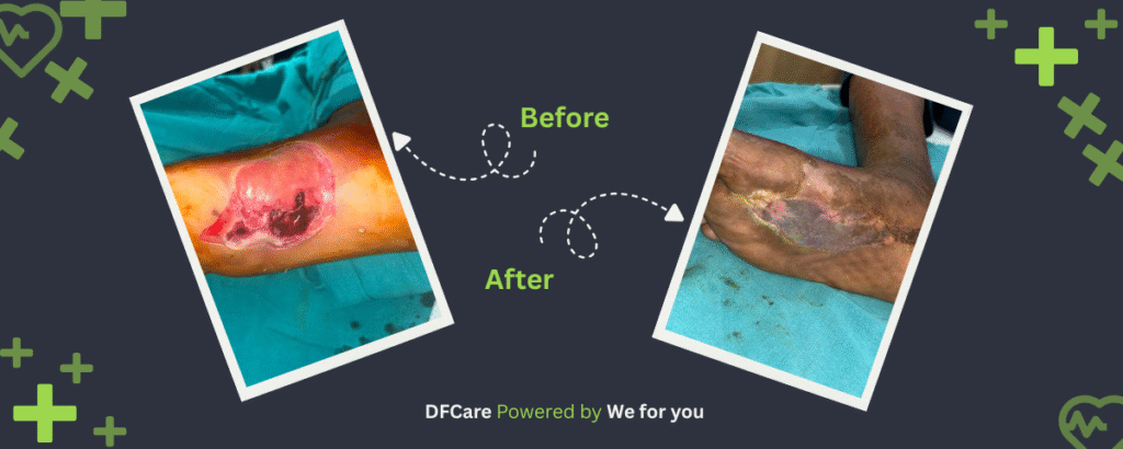 If left untreated, these small wounds can rapidly progress into deep-seated infections, lead to tissue death (gangrene), and ultimately necessitate amputation. In severe cases, infection can even spread to the bone (osteomyelitis), making treatment more complex. At DFCare, we specialize in advanced wound reconstruction and limb-salvage procedures. Our approach includes early diagnosis, infection control, pressure offloading, and personalized treatment plans tailored to each patient’s condition and lifestyle.